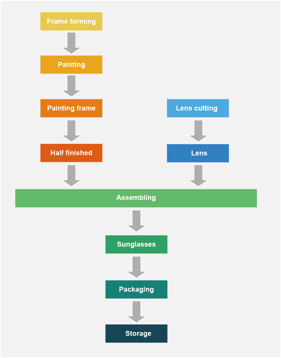 The following table is the explanation of all production phases starting from raw materials to the final product :
